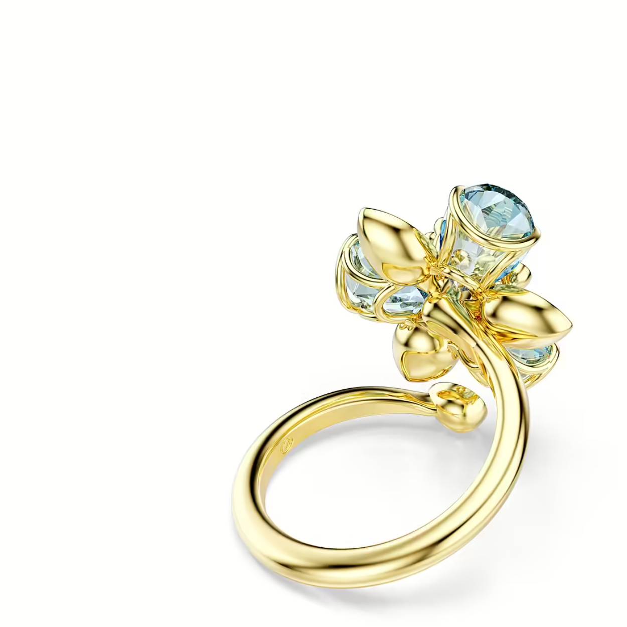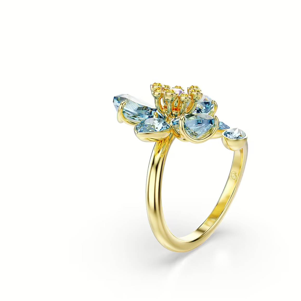 Til uw op de natuur geïnspireerde stijl naar een hoger niveau met deze schitterende ring met motief. De band met goudkleurige toplaag slingert zich rond de vinger met in het midden een bloem vervaardigd uit blauwe en gele kristallen. De verschillende vormen en tinten zorgen voor magie in elk detail. Combineer deze ring met een bijpassende Idyllia-hanger voor een complete look vol kleur en plezier.