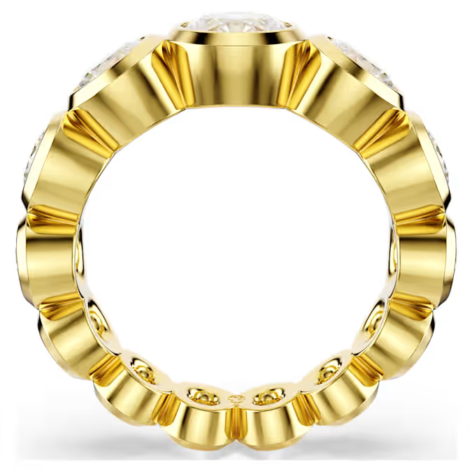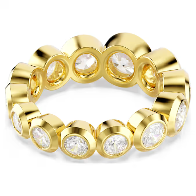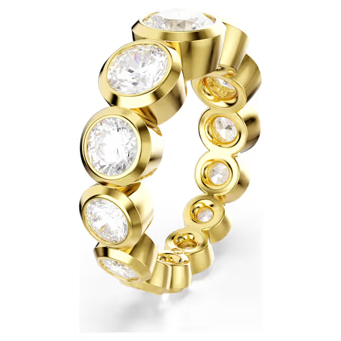 Deze Imber-ring is ideaal voor zowel overdag als ‘s avonds en maakt op elk moment indruk. De ring met goudkleurige toplaag is meesterlijk vervaardigd met een volledige cirkel Swarovski Zirkonia in Round-slijpvorm, elk in een moderne bezelzetting. Het verloop van verschillende formaten zorgt voor een opvallend effect in combinatie met een schitterende gloed vanuit elke hoek. Draag deze ring met een paar bijpassende oorbellen voor een elegante uitstraling.