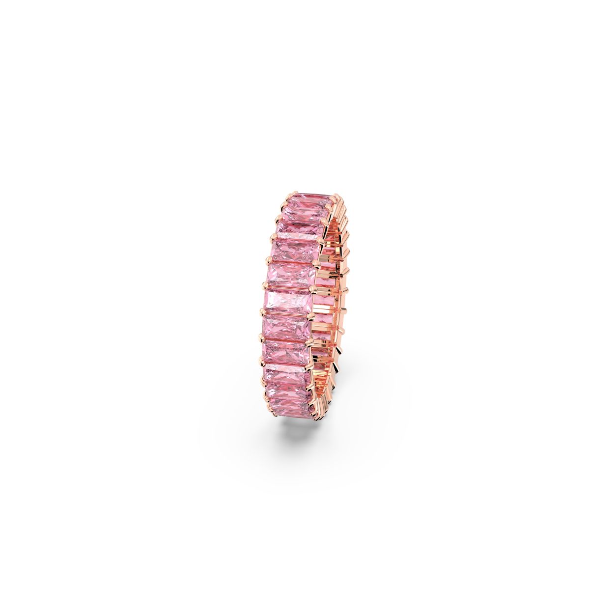 Deze Matrix-ring is dan wel klein, maar hij bevat ontzettend veel details. De zetting met rosegoudkleurige toplaag is de perfecte basis voor een cirkel van roze stenen met een prachtige baguette princess-slijpvorm. Elk kristal wordt op de plek gehouden met een klauwzetting en zorgt voor een schitterend samenhangend kleurenschema. Deze elegante ring is ontworpen om gecombineerd te worden met andere sieraden voor speciale gelegenheden.
