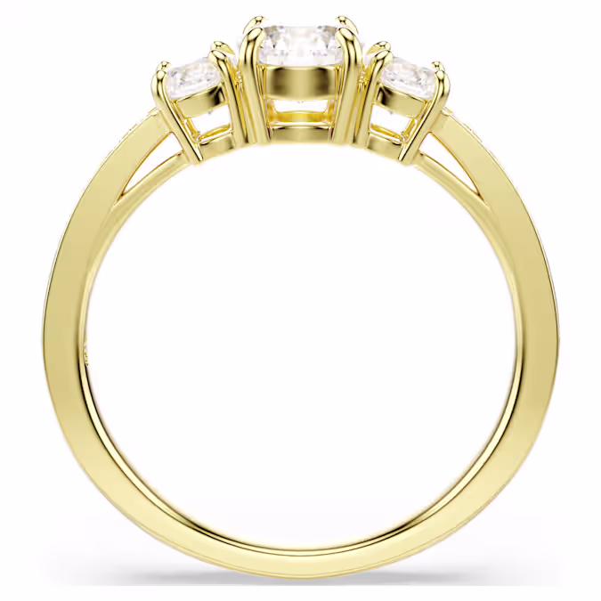 De Stilla-lijn is vervaardigd voor elke gelegenheid en roept pure elegantie op. Deze klassieke ring tilt uitstraling naar een hoger niveau met heldere kristallen langs de band en een trio van nauwkeurig geslepen Swarovski Zirkonia op een glanzende goudkleurige afwerking. Een beeldschoon sieraad voor elke dag dat gemakkelijk kan worden gecombineerd met andere stukken uit dezelfde lijn.