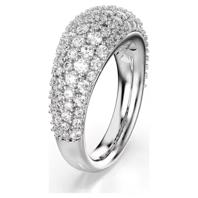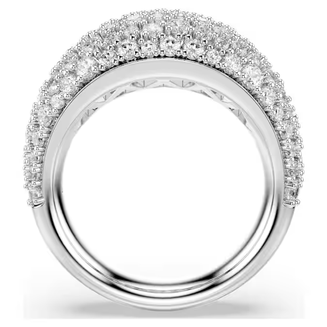 Deze koepelvormige ring met rhodium toplaag is ontworpen voor maximale impact en is prachtig versierd met heldere Swarovski Zirkonia die met de chatontechniek zijn gezet. Ideaal voor momenten waarop elegantie en verwondering gewenst zijn.