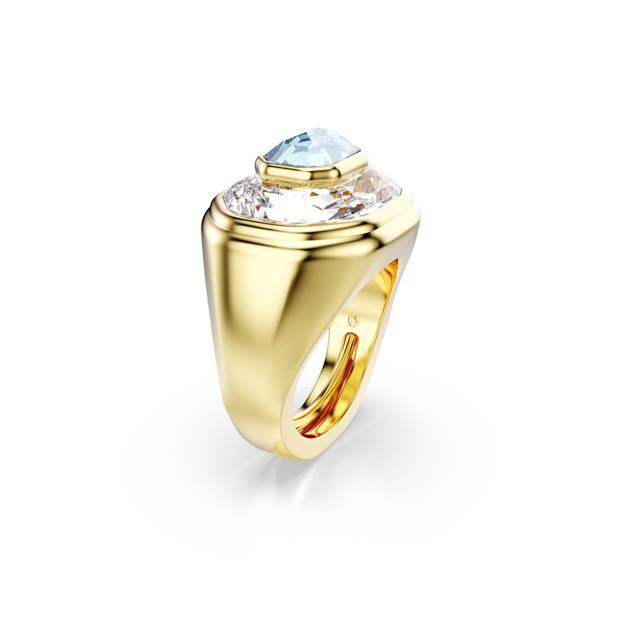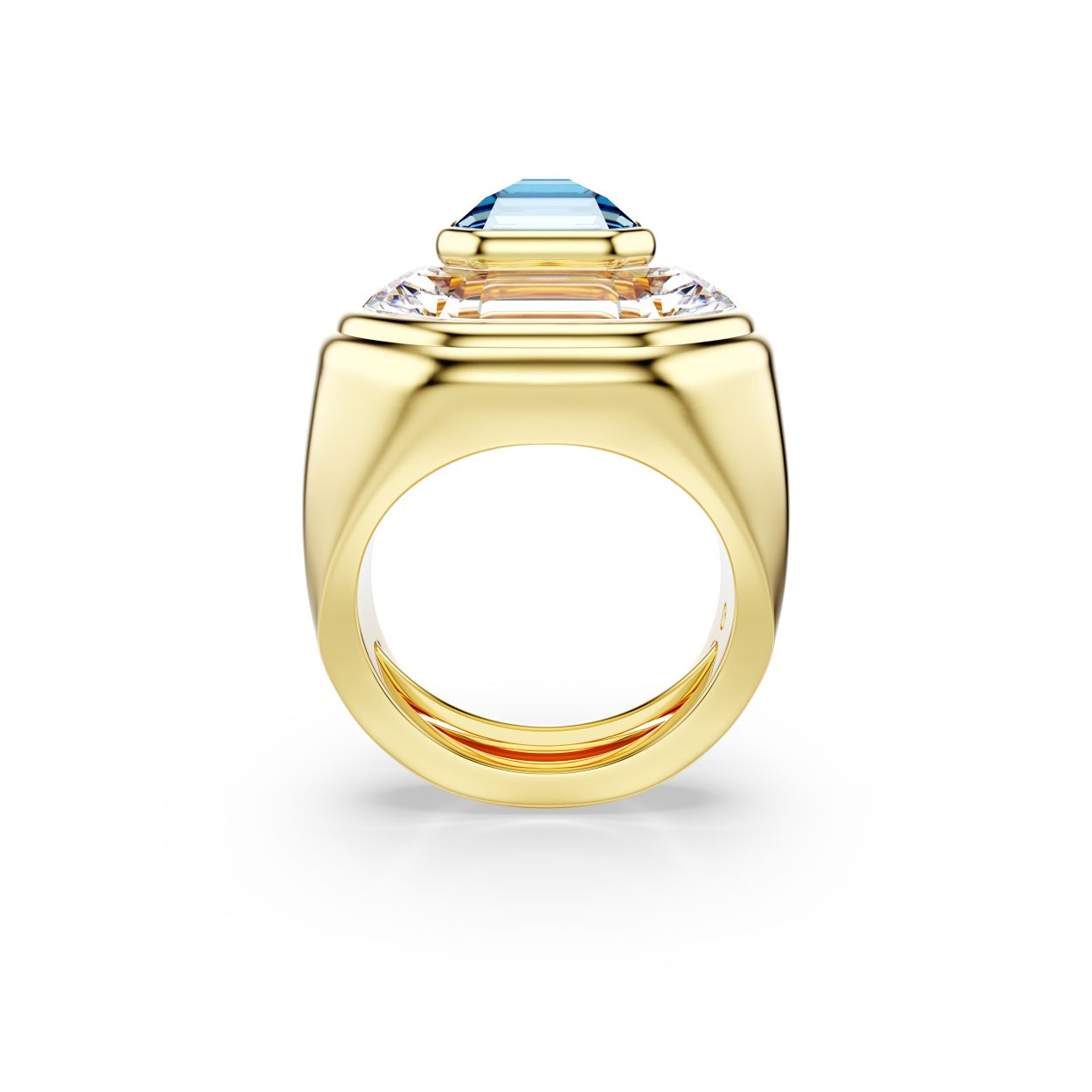Straal onverschrokken glans uit met deze creatieve Chroma-ring. De facetgeslepen ring met goudkleurige toplaag is voorzien van een centraal blauw kristal in Octagon-slijpvorm, dat bovenop een tweede helder kristal in een groter formaat is geplaatst. De combinatie van kleur en schittering geeft elke outfit een perfect accent in Swarovski-stijl. Deze verstelbare ring heeft een speciaal mechanisme om de maat te veranderen, zodat u de ring om elke vinger kunt dragen. Als u maat 55 en kleiner nodig hebt, raden wij u aan om voor maat 50-55 te gaan. Als u maat 55 en groter nodig hebt, raden wij u aan om voor maat 55-60 te gaan.