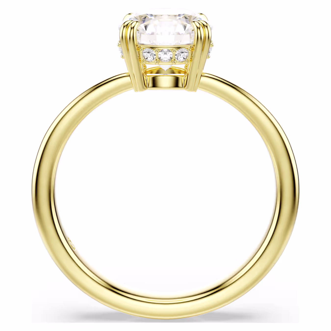 Deze Stilla-ring, die schitterend als een ster aan de nachtelijke hemel, wordt gegarandeerd uw nieuwe favoriet. De band met goudkleurige toplaag heeft een elegante Swarovski Zirkonia in princess-slijpvorm, gezet in een dubbele klauwzetting met een delicate pavé ernaast. Draag de ring solo of combineer hem met verschillende metaaltinten voor een eigentijdse look.