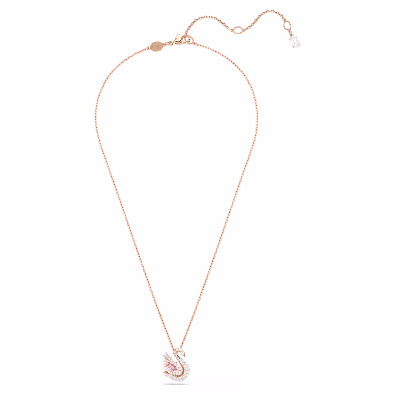 Deze hanger geeft de gracieuze beweging van Swarovski’s iconische zwaan weer. Het centrale motief, dat aan een collier met roségoudkleurige toplaag hangt, onthult een elegant silhouet, versierd met heldere Swarovski Zirkonia en een roze dansende steen in swan body-slijpvorm. Dit stralende detail zorgt voor een eindeloze beweging van kleur en licht en laat uw stijl op elk moment stralen.