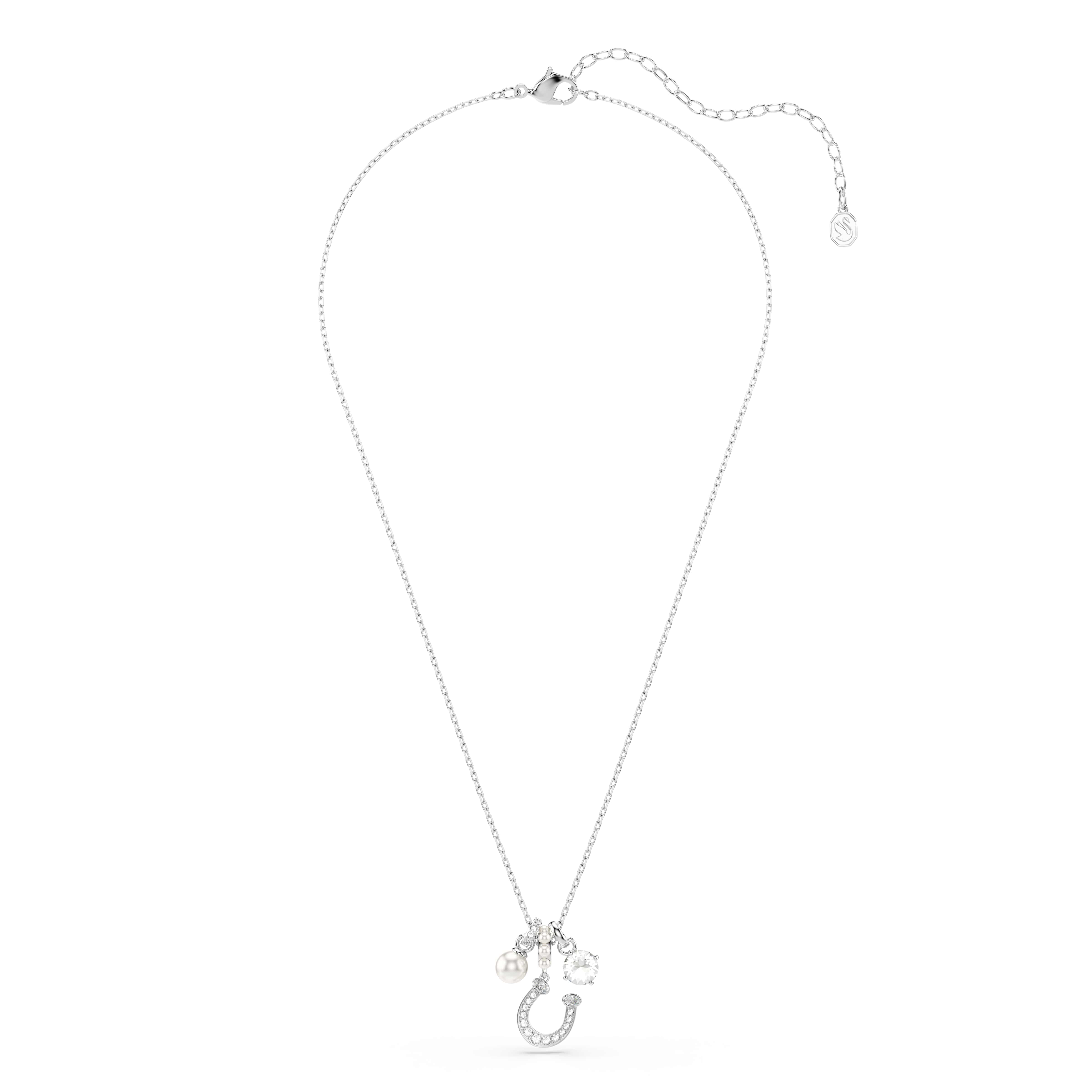 Een geïnspireerd ontwerp voor dagelijks succes: deze stralende hanger heeft een rhodium toplaag en is versierd met een groot kristal en een Swarovski Crystal Pearl. Daaronder hangt een hoefijzermotief, dat zijn eigen stralende pavé van heldere kristallen onthult. Draag deze hanger zelf of geef hem cadeau aan iemand die zijn dromen najaagt.