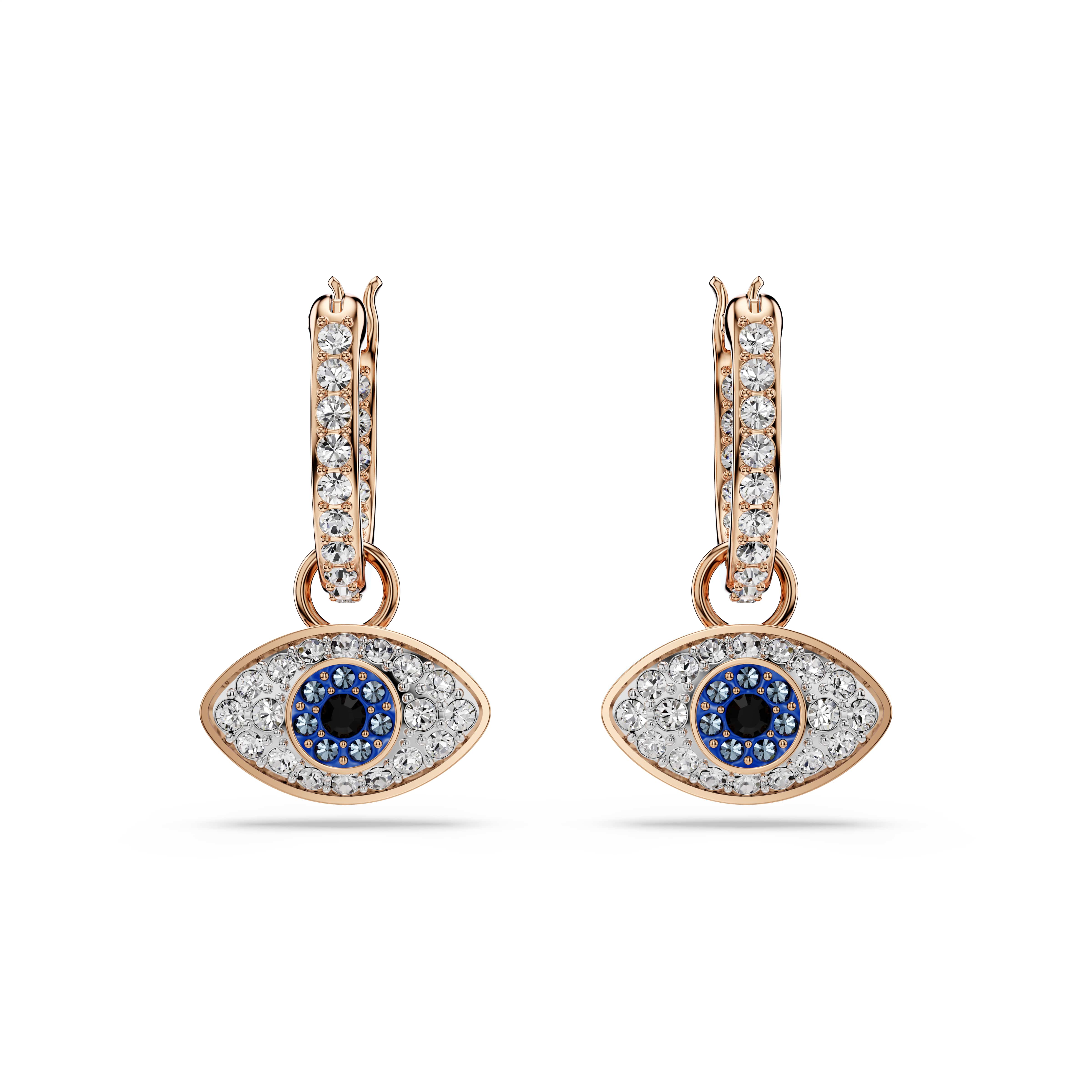 Geef ruimte voor je spirituele kant met deze oorbellen met roségoudkleurige toplaag. De bolvormige boze-oogmotieven hangen aan klassieke pavé ringen en zijn versierd met heldere, blauwe en zwarte pavé. Deze oorbellen zijn geïnspireerd op het traditionele talisman-symbool en geven elke outfit een vleugje mystieke glamour.