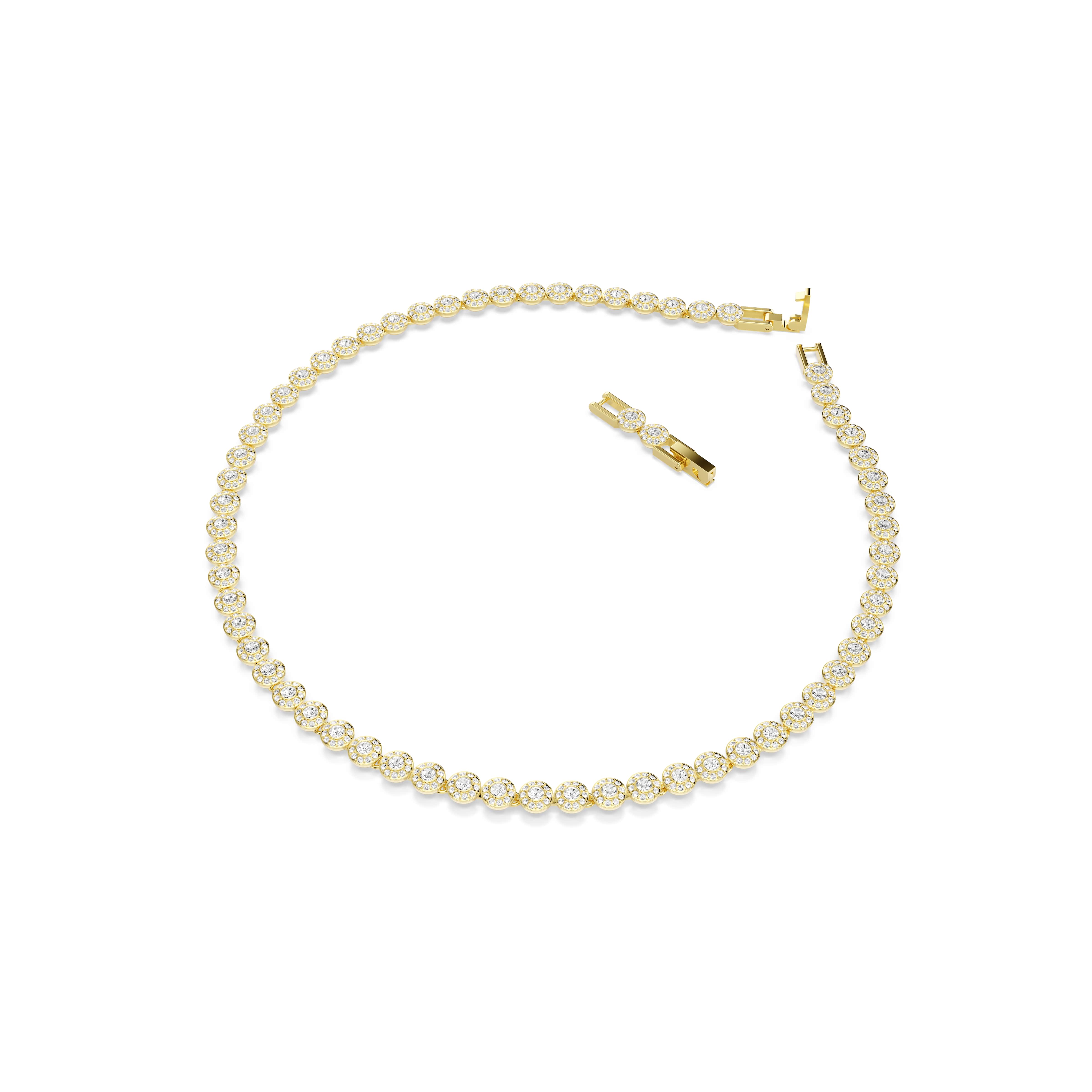 Deze schitterende Una-ketting, een van Swarovski’s meest geliefde silhouetten, straalt tijdloze verfijning uit. Het ontwerp met goudkleurige toplaag is volledig omgeven door grote kristallen in Round-slijpvorm, elk omlijst door een halo van heldere pavé. De vouwsluiting zorgt voor een naadloze sluiting, terwijl de extra extender betekent dat u het sieraad kunt aanpassen voor zowel comfort als maat. Een perfecte manier om de glamour in uw styling zowel overdag als ‘s nachts te accentueren.
