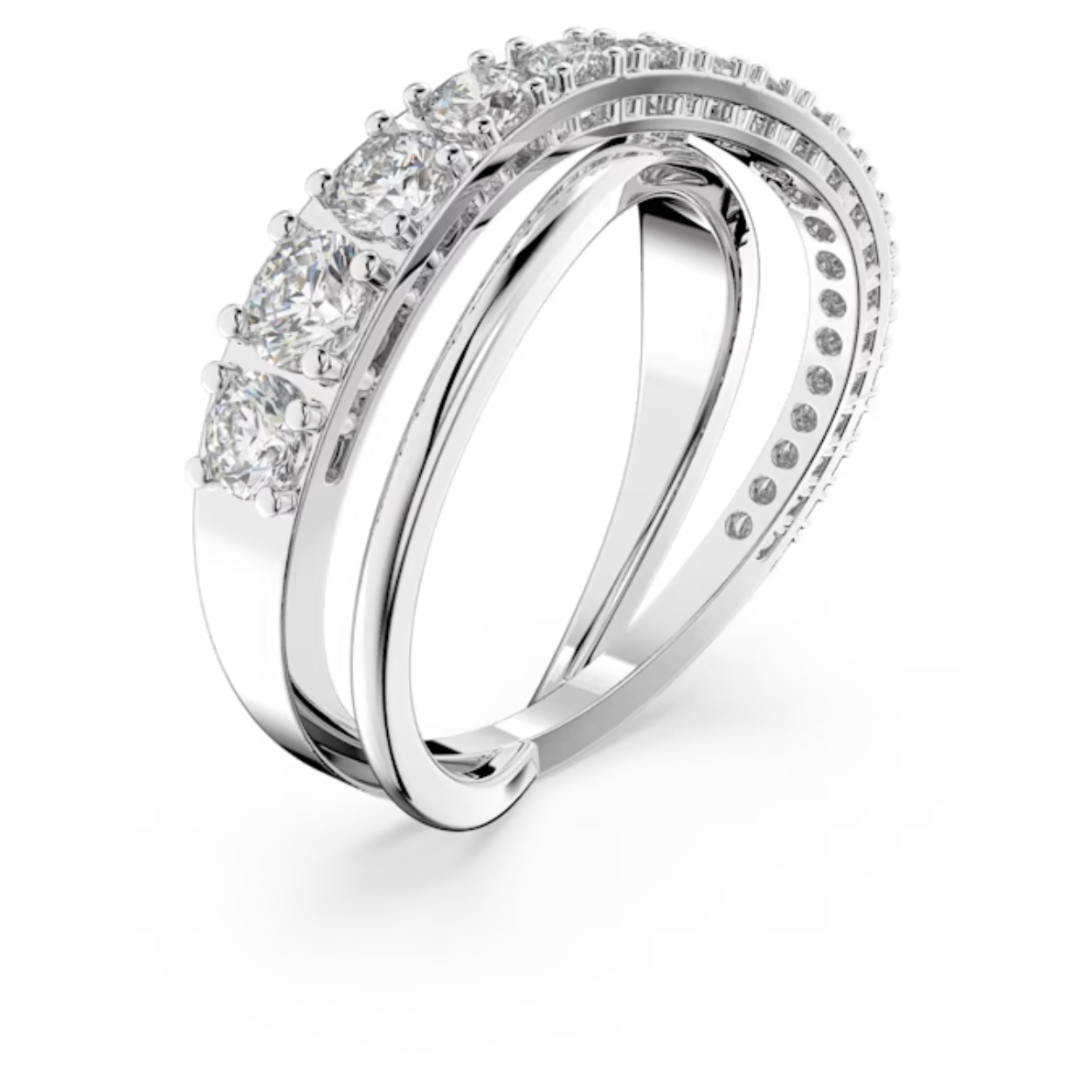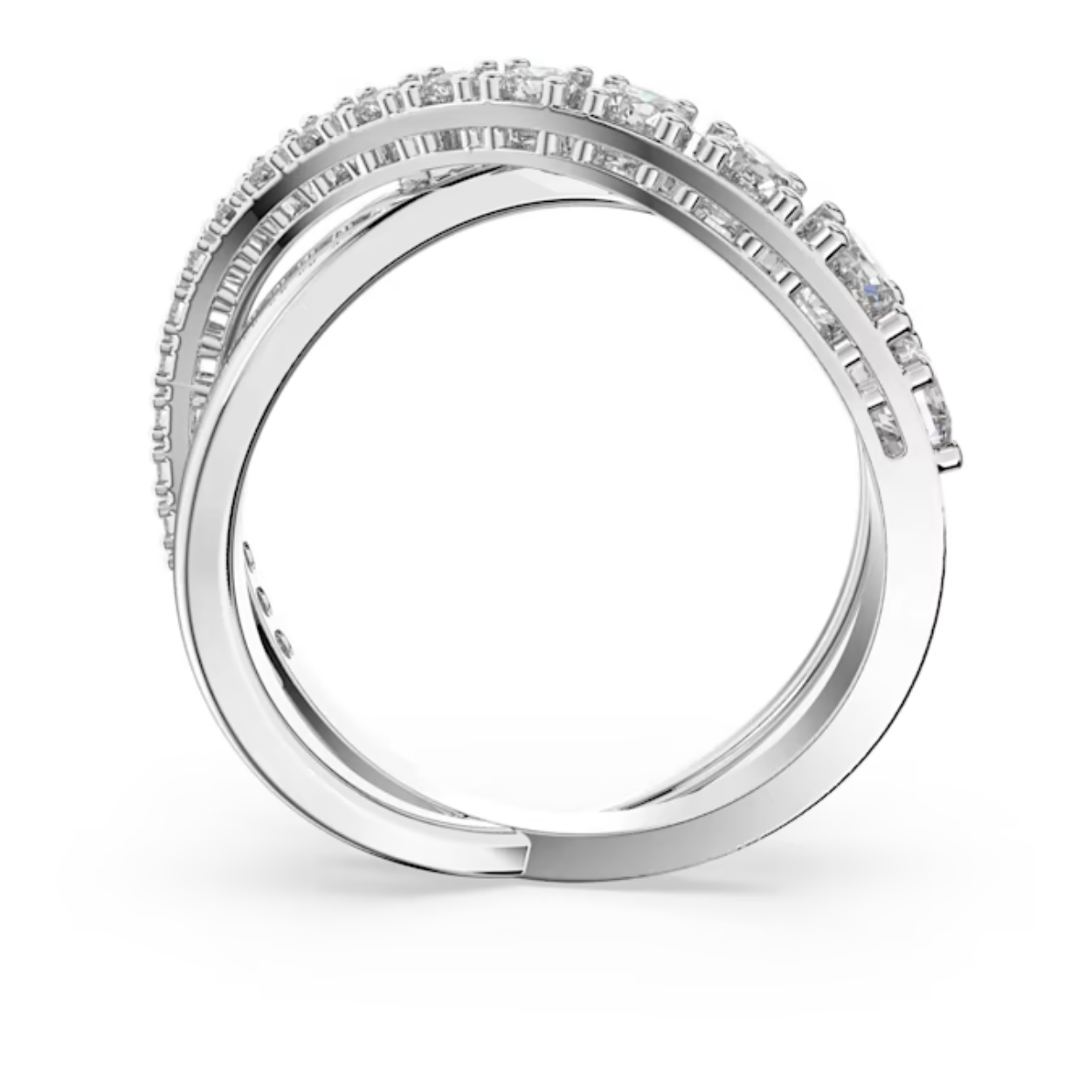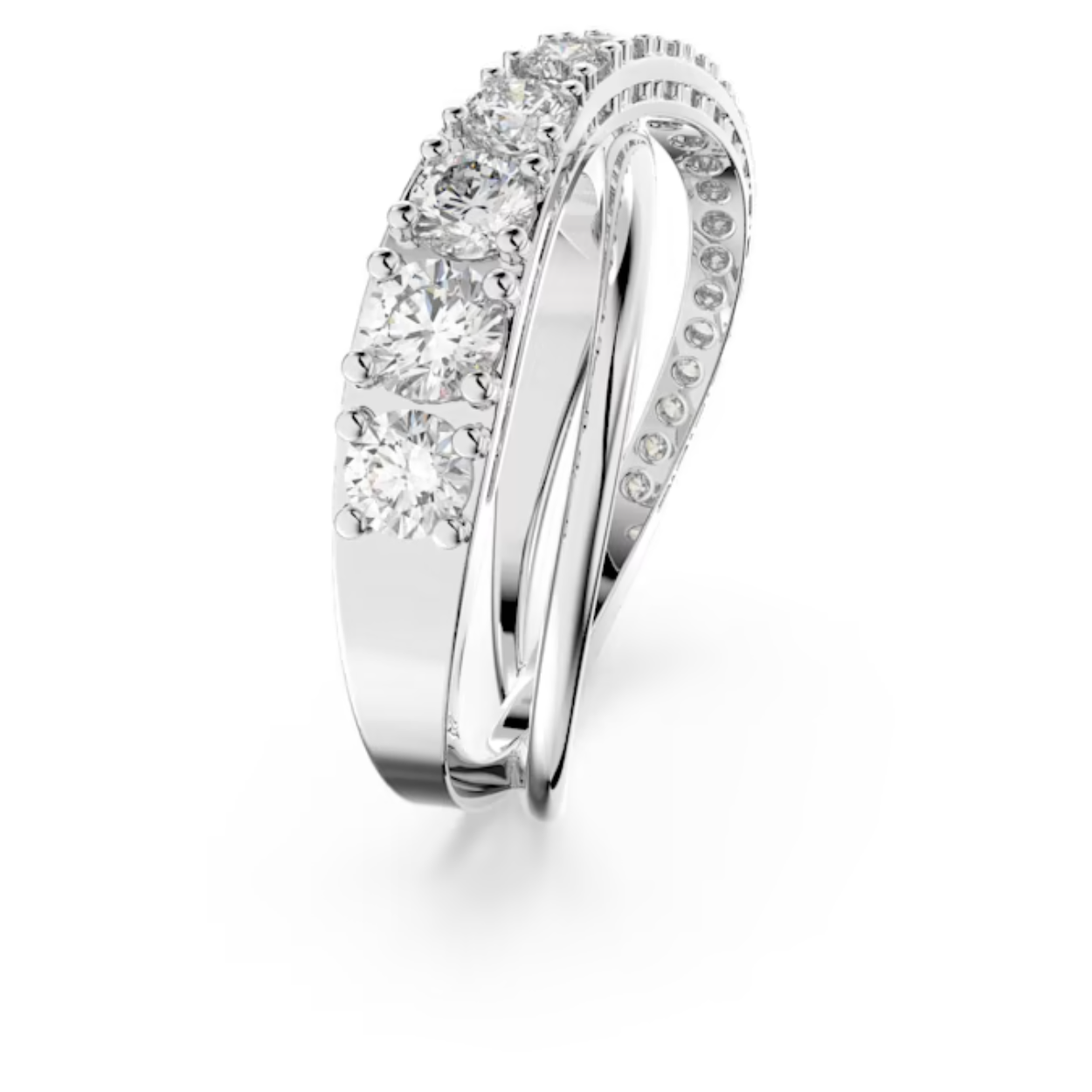 Tijdloos en stijlvol, puristisch en schitterend. Deze ring van Swarovski geeft zijn eigen draai aan de spiraaltrend. Twee schitterende lijnen komen samen in elegante, zachte vormen; waarvan een is versierd met prachtige heldere stenen die de ring een stralende glans geven. Door het minimalistische design is de ring ideaal om dagelijks te dragen en voeg je een schittering toe aan je stijl.