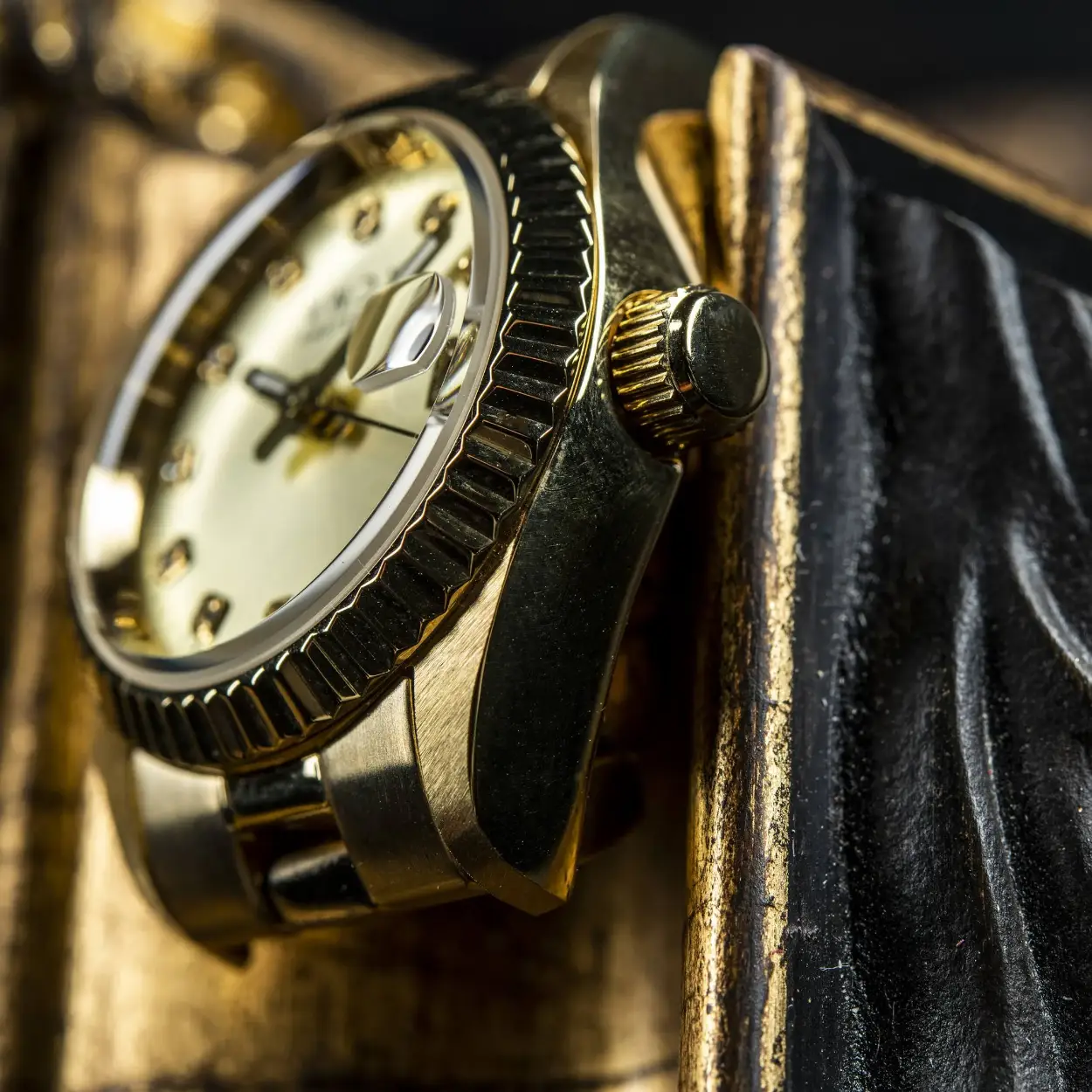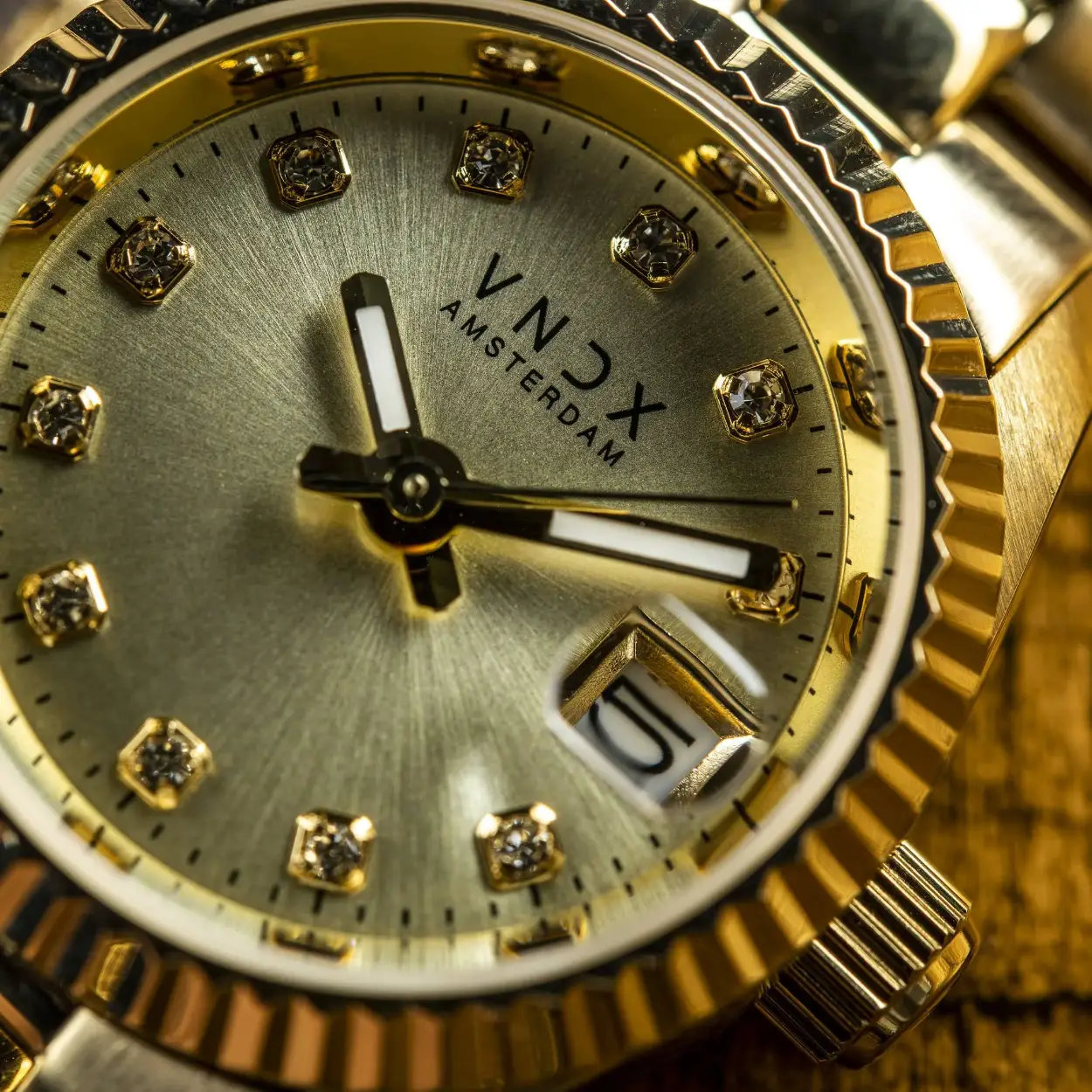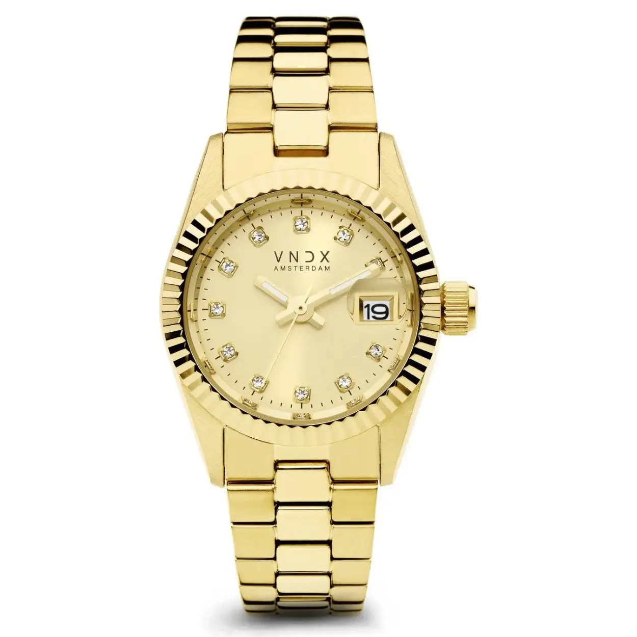 Wat je aanraakt, verandert in goud. Maak een grote indruk met dit kleine horloge. Dit gouden pronkstuk met stevige stalen band laat je stralen bij elke gelegenheid. Durf voor goud te gaan, en ontdek hoe GROOT klein kan zijn. The Devil is in the details, ook met dit horloge. Never too late.