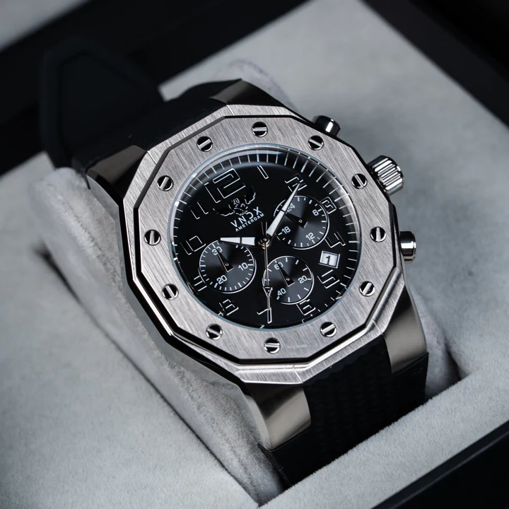 De Ibiza Rebel van VNDX Amsterdam is een krachtig uniseks horloge met een robuuste uitstraling, een roestvrijstalen zilveren kast en een zwarte wijzerplaat. Dit statement piece is ontworpen voor wie geen concessies wil doen aan stijl of functionaliteit. Dankzij dit zilver polshorloge met krachtig uurwerk ben je altijd voorbereid – dag en nacht.