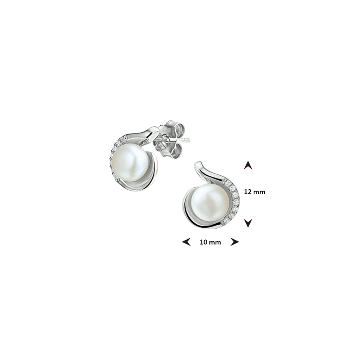 Gerhodineerd zilveren oorknoppen met zirkonia en zoetwaterparel. De oorknoppen zijn onderdeel van een set.