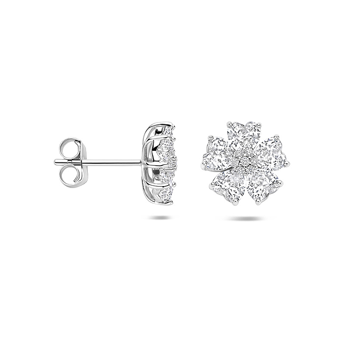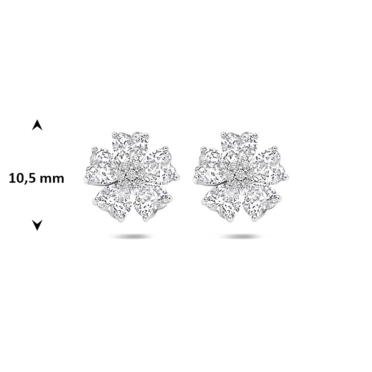 Gerhodineerd zilveren 925 orrknoppen met zirkonia. De oorknoppen hebben een totale hoogte van 10.5mm.